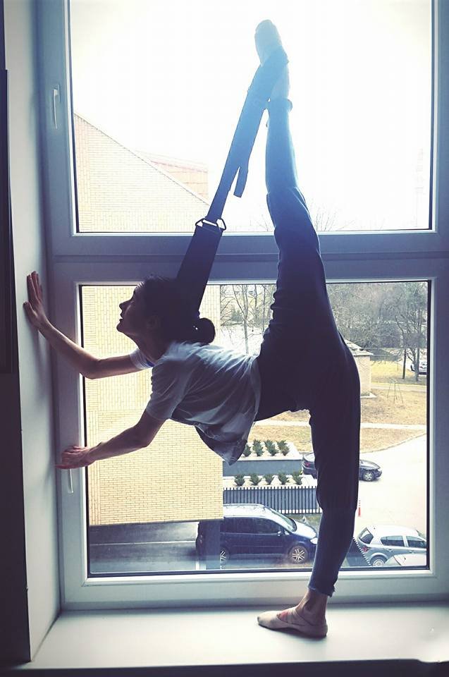 Klaipėdos valstybinio muzikinio teatro balerina Viktorija Gulnickaja išnaudoja kiekvieną laisvą minutę ir tarp repeticijų tobulina savo kūno lankstumą.