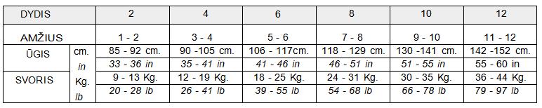 Intermezzo gamintojo vaikų drabužių dydžiai