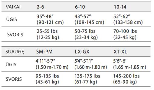 „Mondor” gamintojo čiuožimo pėdkelnių dydžiai – vaikų ir suaugusių (3322, 3326)