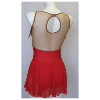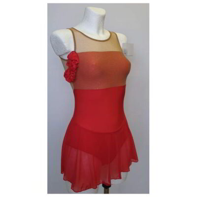 Dailiojo čiuožimo suknelė su kūno spalvos tinkleliu, padengtu blizgiu.