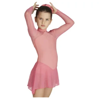 Varžybų suknelė, rankų darbo iš patogios, bi-elastinės likros, su dvigubu sijonu ir rankovėmis iš skaidraus, švelnaus, lengvo ir tampraus tinklelio. Ji turi odos spalvos piršto kilputę ir aukštą apykaklę. Papuošta AB SS12 kristalais, kurie sudaro ypatingą motyvą iškirptėje ir dengia visą suknelę. Nugara su rakto skylutės formos iškirpte ir užspaudžiamu užsegimu ant kaklo. Prie suknelės pridedamas plaukų gumelė ir užvalkalas.