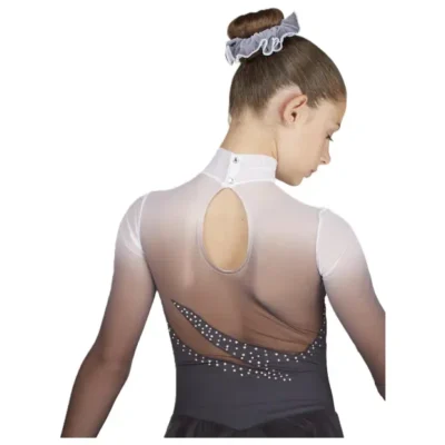 Varžybų suknelė, rankų darbo iš patogios, bi-elastinės likros, su dvigubu sijonu ir rankovėmis iš skaidraus, švelnaus, lengvo ir tampraus tinklelio. Ji turi odos spalvos piršto kilputę ir aukštą apykaklę. Papuošta AB SS12 kristalais, kurie sudaro ypatingą motyvą iškirptėje ir dengia visą suknelę. Nugara su rakto skylutės formos iškirpte ir užspaudžiamu užsegimu ant kaklo. Prie suknelės pridedamas plaukų gumelė ir užvalkalas.