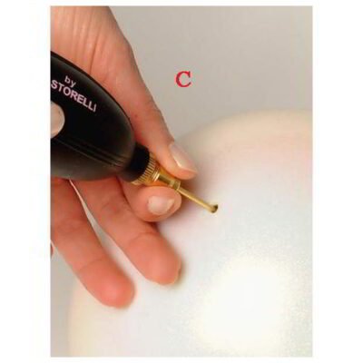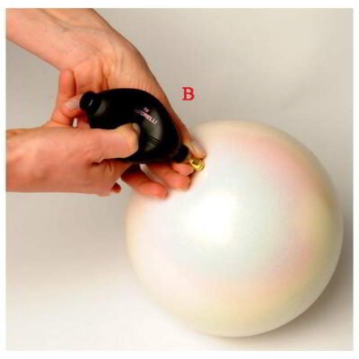 2 – Pūskite kamuolį kita ranka pakartotinai spausdami juodą guminę pompos dalį . (B paveikslas)